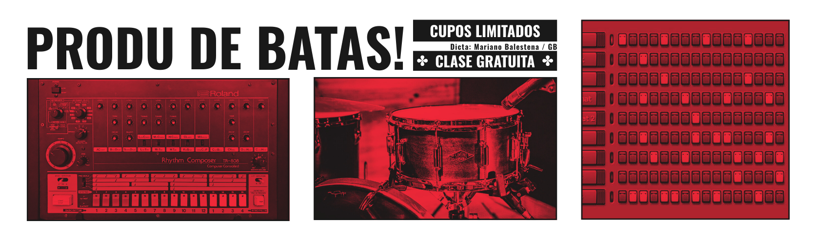 Clase gratuita para el público de Guerrilla Boutique dedicada a la composición de partes de batería electrónica y acústica, pensada para músiques, productores y cantantes que quieran incluir o mejorar las partes rítmicas de sus maquetas.
